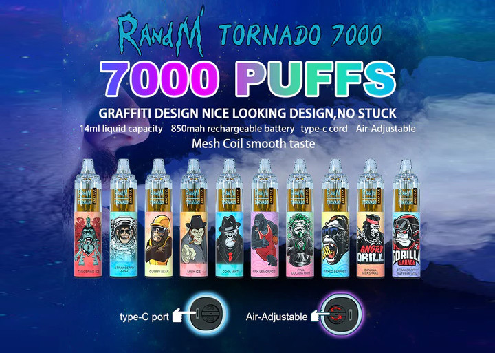 랜드텀 토네이도 7000은 기류 함수 조절과 재충전이 가능한 일회용 불연성 담배입니다. 펜은 당신이 모든 14 밀리람베르트 e-액체를 다 써버릴 수 있다는 것을 보증하는 1000 mAh 집적 배터리가 딸려 있습니다.